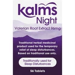 Kalms Night contains valerian, traditionally used for its sedative action to relieve sleeplessness without causing drowsiness the next day. Valerian is used to relieve restlessness and sleep disturbances. For adults and the elderly. Not recommended for children or adolescents under 18 years old.